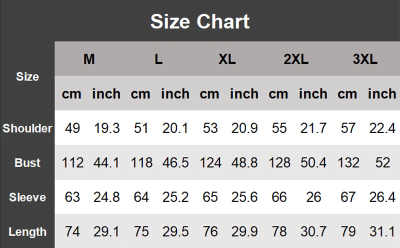 Size: M, L, XL, 2XL, 3XL